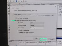 Make sure that the “Format this volume with the following settings” option is selected with default settings then click “Next”.