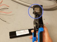 49. Cut five 24 AWG 6" wires: red, black, white, green, and blue. Strip about 1/4" off of both ends of all the wires. Then, use a crimping tool to attach a terminal to each end.