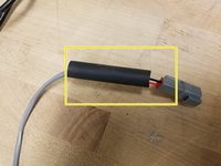 23. Cut two inches of heat shrink wrap And slide in on the wire to cover where the grey insulation ends.